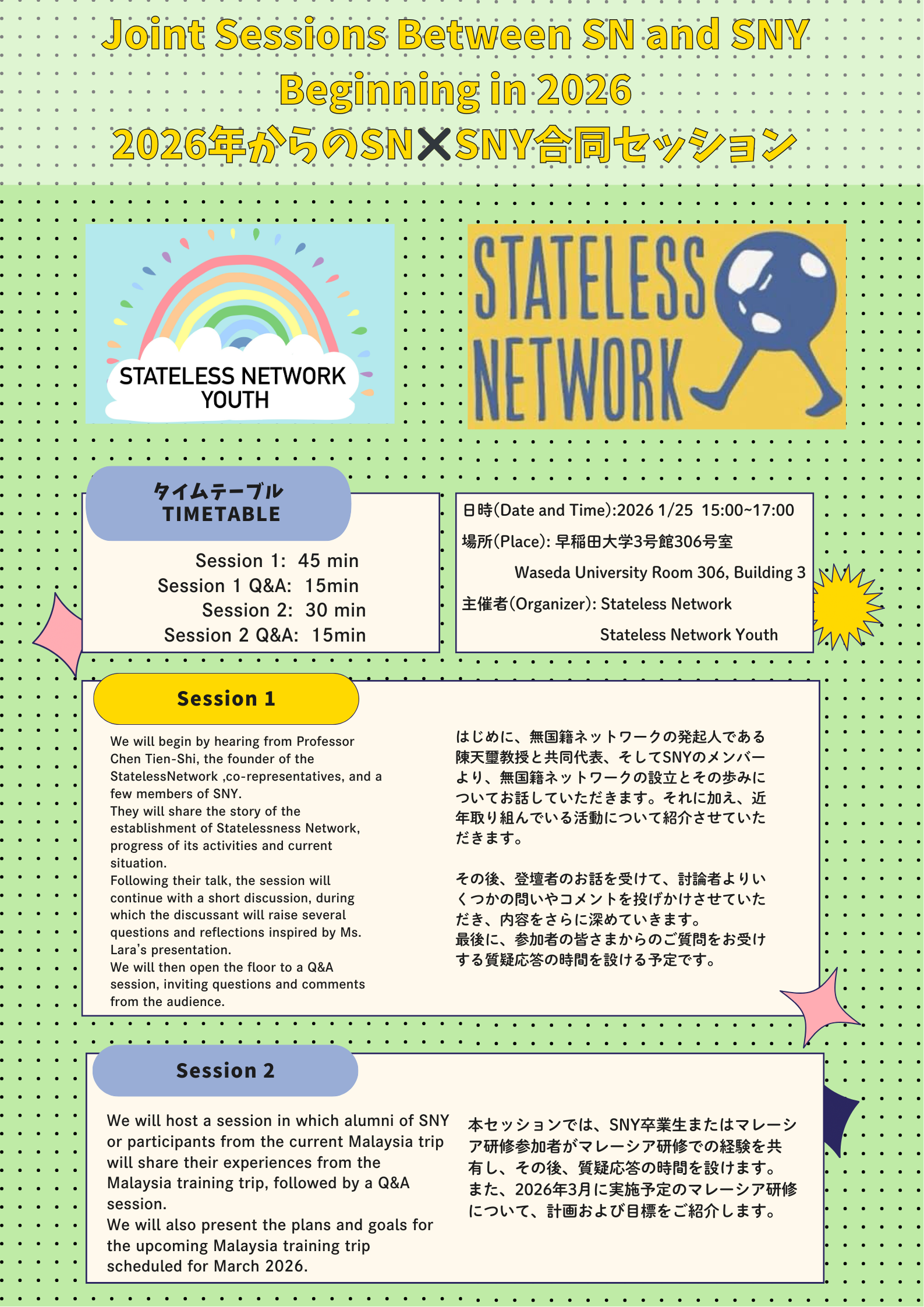 この度、無国籍ネットワークユースが企画した対面のトークイベントを開催いたします。